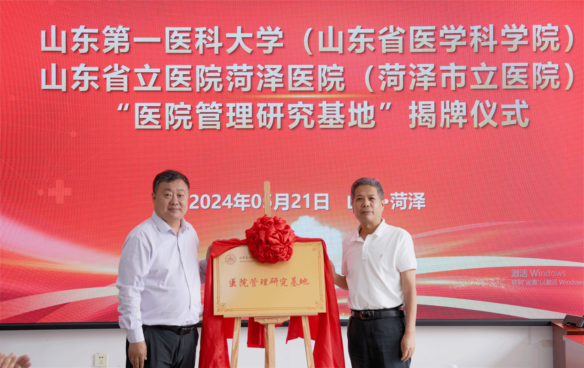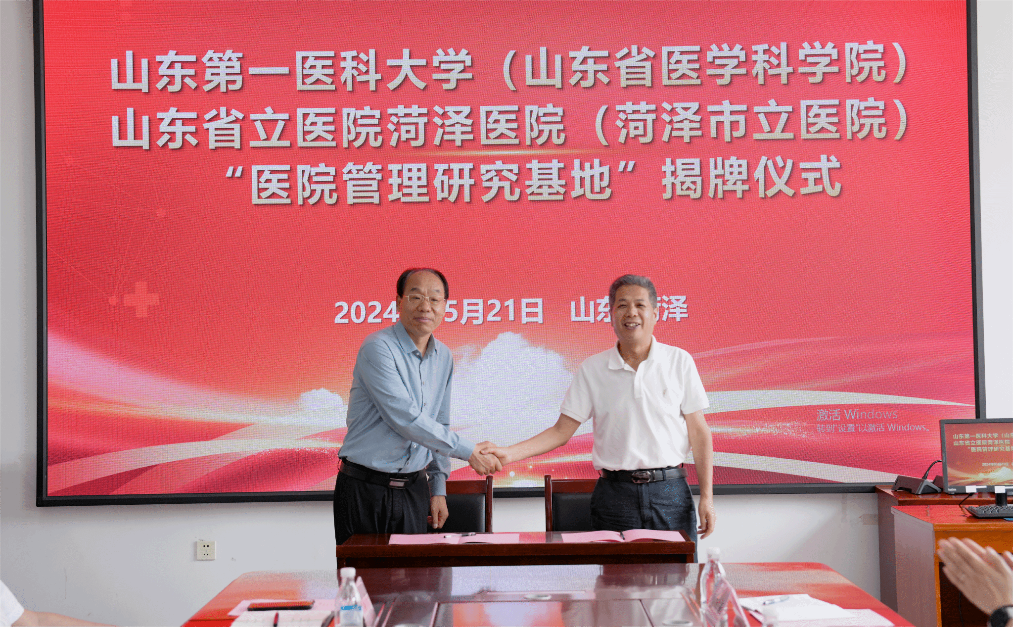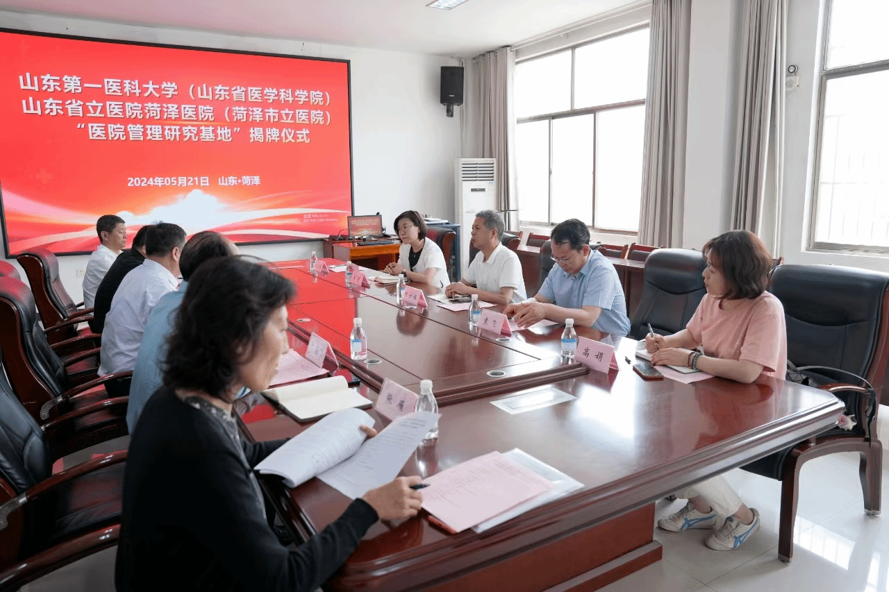 为加强实践教学,促进产教研融合发展,提高人才培养质量,5月21日,山一大十大买球官方网站陈士福一行到山东省立医院菏泽医院(菏泽市立医院)挂牌“医院管理研究基地”,并签订了合作框架协议。山东省立医院菏泽医院(菏泽市立医院)党委委员、执行院长赵序利、党委副书记王强、副院长张全忠、十大买球官方网站院长陈士福、公共事业管理系主任袁飞、科研办主任王燕、教学办主任高娟出席活动。