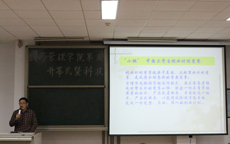 开幕式结束后,优秀指导教师崔行武老师做了针对“挑战杯”竞赛进行了专题辅导。崔老师对我校“挑战杯”竞赛的发展历程、“挑战杯”竞赛的形式、比赛办法、项目选取方向、作品形成、团队构成要素等方面进行了全面的分析和指导。他提出竞赛项目的选取和团队构建是参赛的基础,项目选取是参赛成功与否的关键,还通过案例分析给同学们演示商业计划书的撰写方法。此外,崔老师结合自己的指导大学生参加“挑战杯”的心路历程,鼓励同学们积极参加竞赛活动。