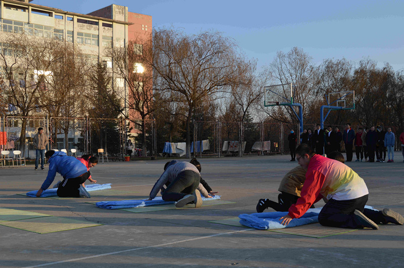 为进一步强化学生安全管理,促进学生文明行为的养成,营造“安全、文明、卫生、舒适”的宿舍环境和健康向上的良好校风,促进平安校园建设,十大买球官方网站于10月中旬举办第十二届大学生宿舍文化艺术节系列活动,杜绝违禁电器签字仪式暨“情飘泰医,爱暖宿舍”宿舍文化艺术节之叠被子大赛作为第十二届大学生宿舍文化艺术节的闭幕式于12月3日下午在篮球场成功举行。泰山医学院学工处副处长崔明明老师、泰山医学院公寓服务中心主任胡作铭老师、十大买球官方网站党委书记张峰老师、各学生公寓的楼长,十大买球官方网站全体辅导员参加了活动。