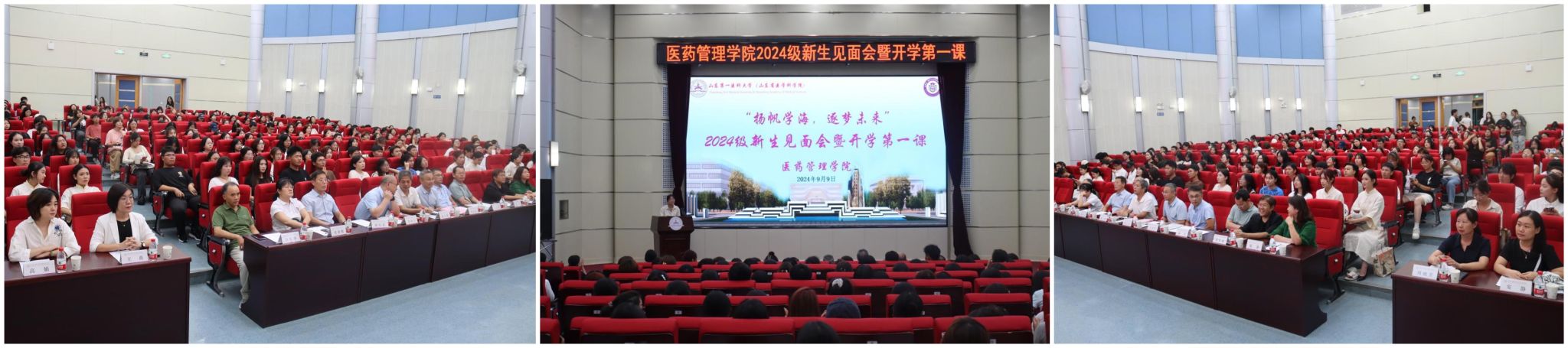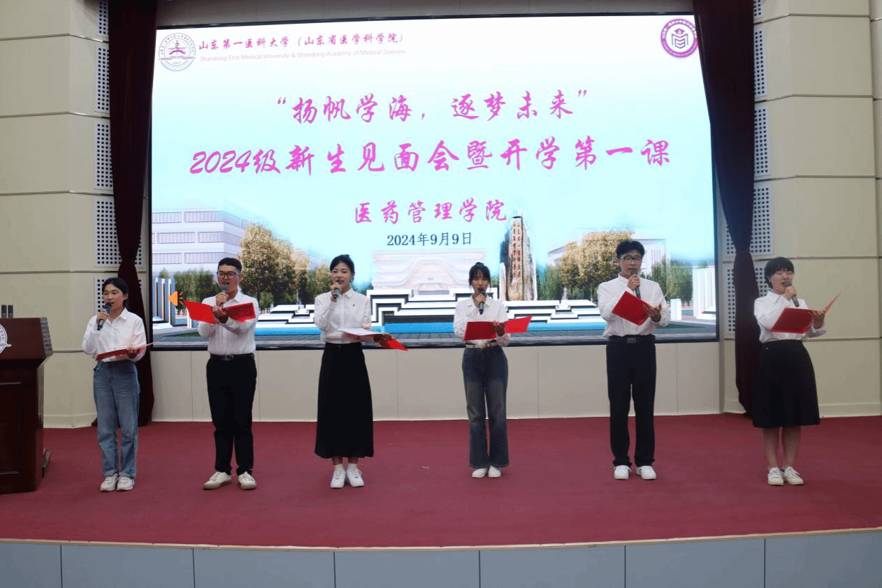 9月9日晚,十大买球官方网站在泰山图书馆报告厅举行“扬帆学海·逐梦未来”2024级新生见面会暨开学第一课。学院院长陈士福、党委书记杜江山、副院长陈海玉、人力资源管理系主任于忠军、市场营销系主任崔行武、公共事业管理系主任袁飞、财政金融系主任张继鹏、预防医学(卫生事业管理)专业负责人张长丽、社会工作系石礼华、综合实验室主任张静、科研管理办公室主任王燕、综合管理办公室主任高娟、教学管理办公室主任张国勇、组织员周晓芳、辅导员安静出席会议。会议由学院团委副书记杨苗苗主持。