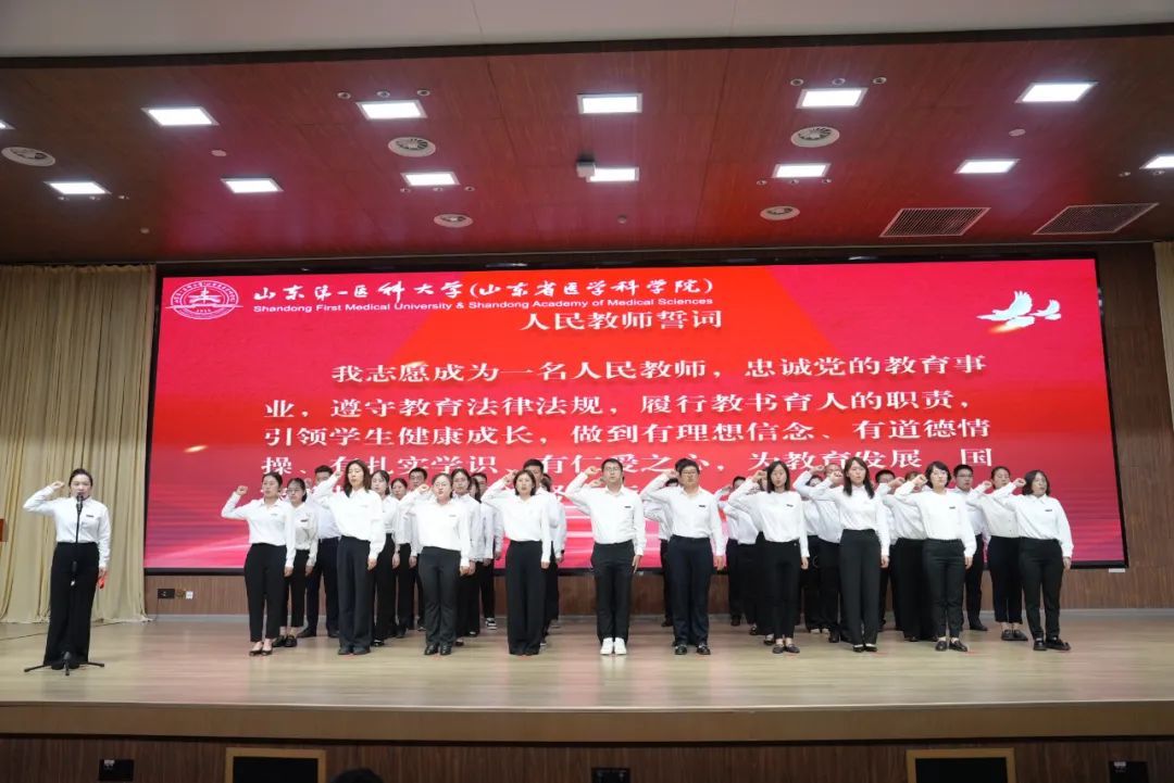 聚得甘露育桃李,春华秋实又一年。9月9日,买球赛十大平台(山东省医学科学院)2024年教师节庆祝表彰大会在济南校区召开。大会上,十大买球官网教师王燕作为校级优秀教师受到表彰,教师闫本超作为新进教师代表进行入职宣誓。