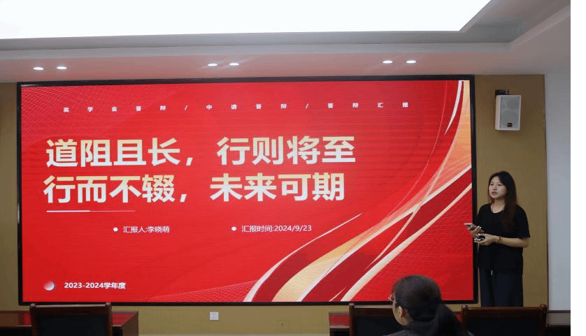 刘琳杰和李晓萌同学在学业成绩、社会实践、志愿服务等方面表现优越,从众多申请者中脱颖而出,获得了宝贵的答辩资格。答辩会上,他们通过PPT的形式,介绍了自己的学习历程和成果,分享了他们在科研创新、社会实践、志愿服务等多个方面的表现。答辩结束后,董灵芝对两位同学的表现给予评价和鼓励,她表示两位同学的答辦内容充分展现了山一大优秀学子的综合素质和昂扬向上的精神风貌,并期待他们在未来有更好的表现。