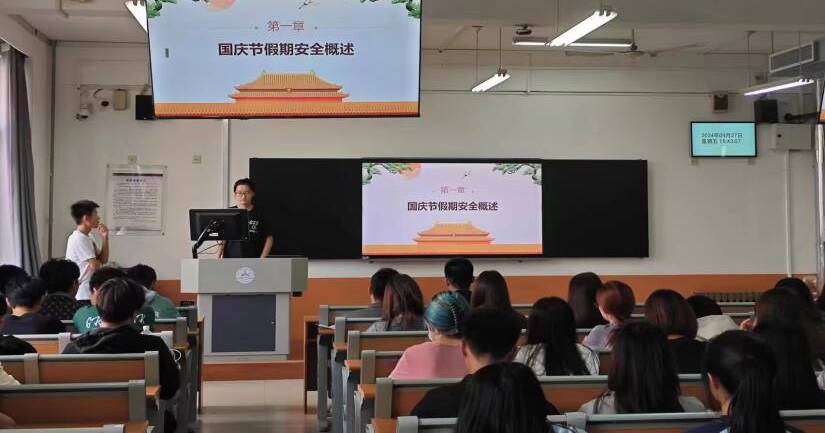 为扎实做好国庆假期学生的安全教育工作,增强同学们的安全防范意识,9月26至29日,学院组织开展国庆假期安全教育主题班会,学院全体学生积极参与主题班会,会议由各年级辅导员主持。