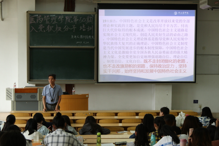 5月20日,十大买球官方网站邀请马克思主义学院院长陈士福为学院第五十期入党积极分子培训班解读习近平新时代中国特色社会主义思想。