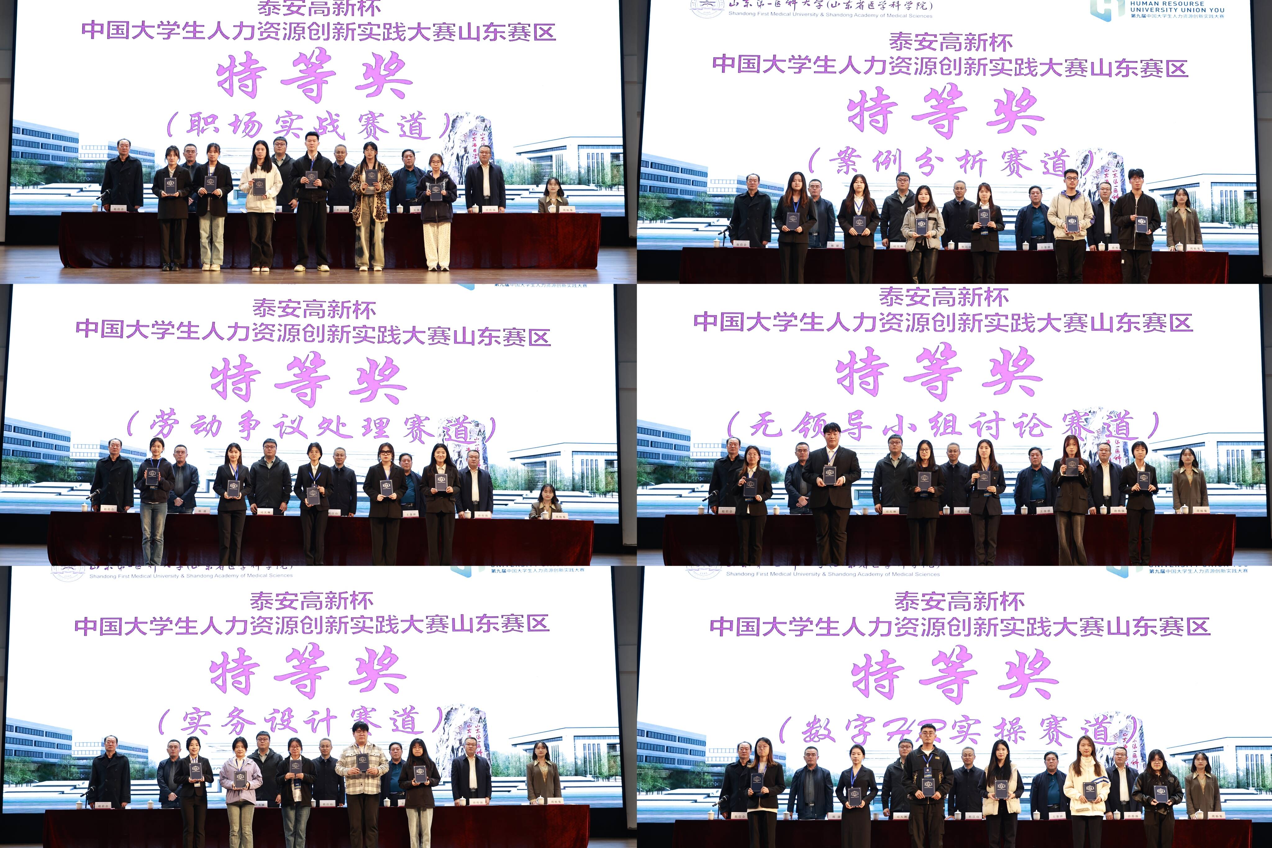 本次比赛分为劳动争议赛项、实务设计赛项、案例分析赛项、职场实战赛项、无领导小组讨论赛项、数字HR实操赛项六大赛道,山东高校参赛规模创历届新高,而且延续校地、校企合作方式,进一步深化了产教融合,大赛评委来自上市公司/央企/国有大型企业/行业头部企业,均为公司高管且从业经历10年以上,确保了赛事水平更高质量的提升。