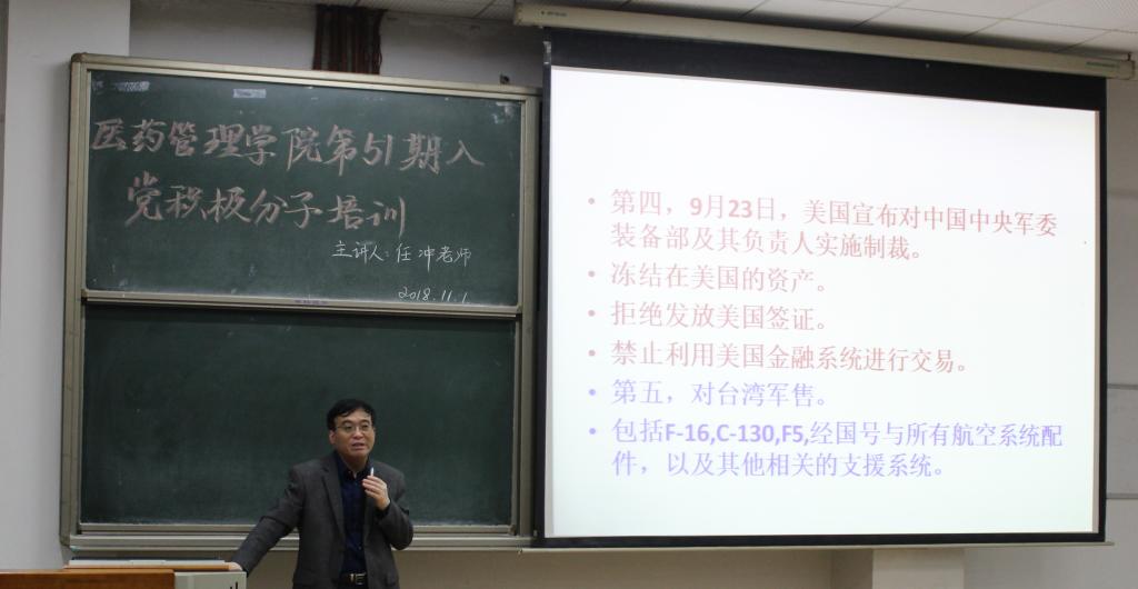 11月1日晚,十大买球官方网站党委邀请马克思主义学院任冲教授在教学南楼c3010教室为十大买球官方网站学生骨干、入党积极分子作当前国内外经济形势报告。
