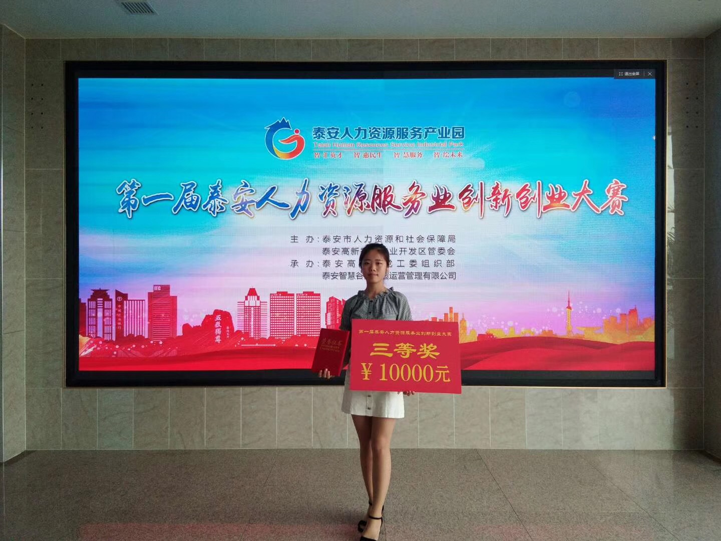 6月12日,由十大买球官方网站工商管理系2017级人力资源管理专业王晨等六名同学组成的“泰仁HR”团队在泰安市第一届“人力资源服务业创新创业大赛”中荣获“三等奖”。