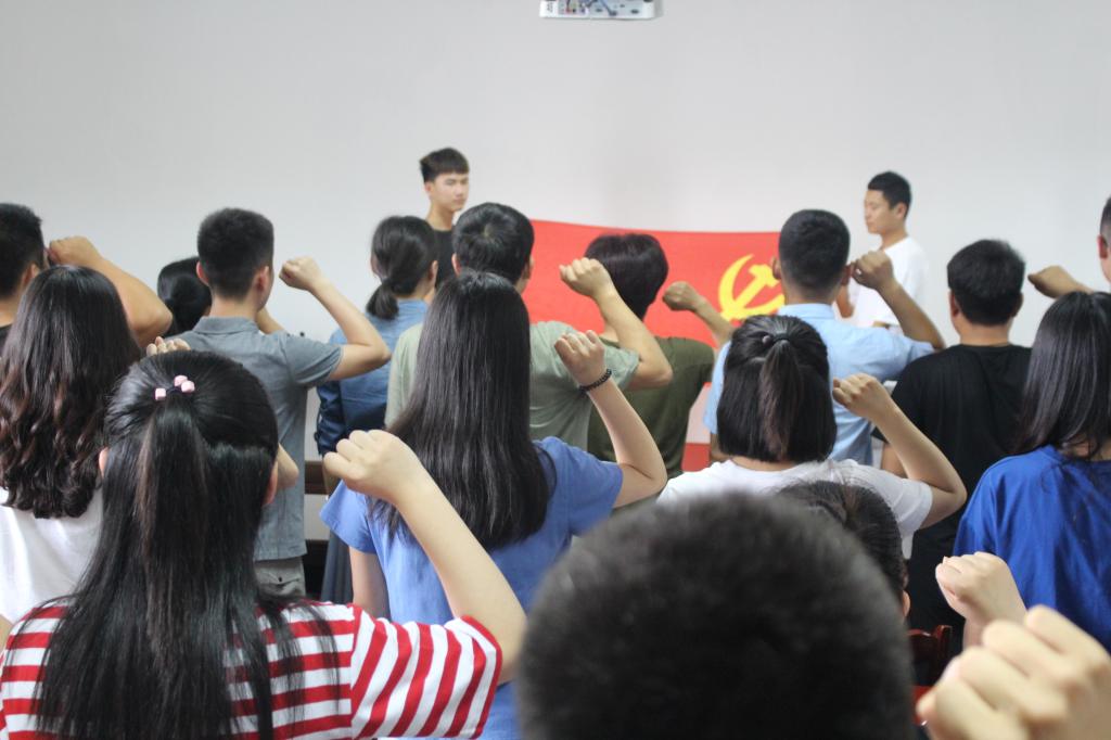 最后,党支部全体成员面向党旗,重温了入党誓词。