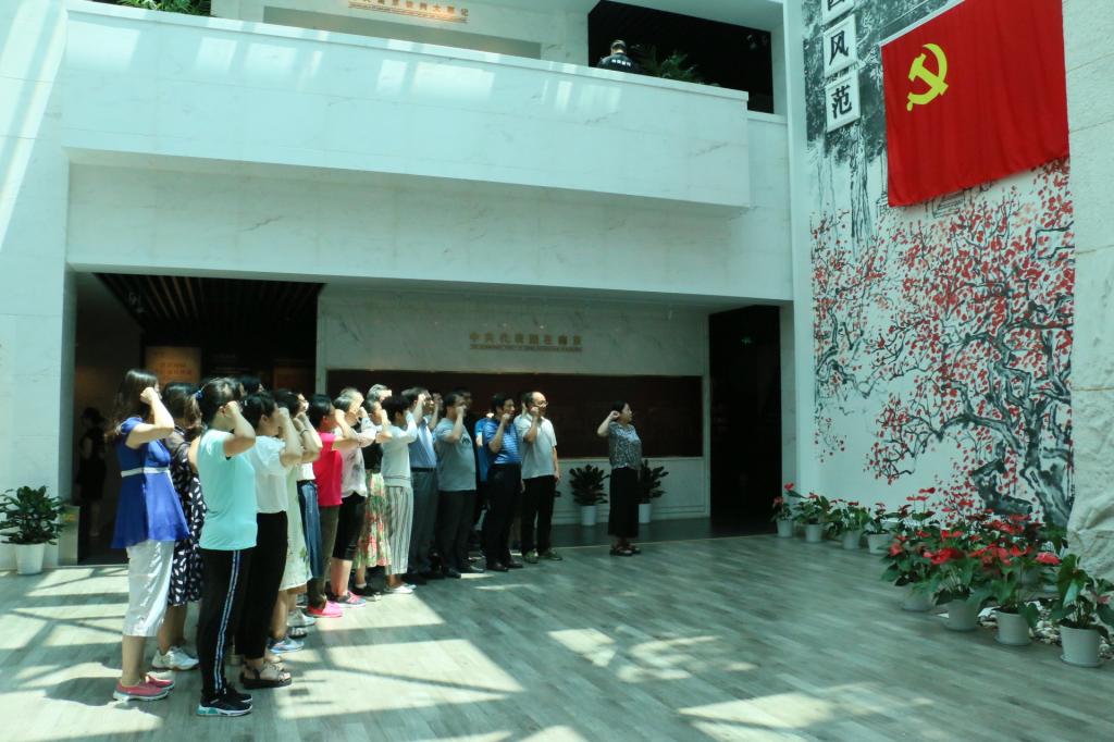 在雨花台烈士陵园纪念馆,党员教师观看了烈士陵园纪念馆,深切感悟了党的优良传统和奋斗历程,党员教师缅怀先烈,敬仰革命烈士的大义凛然和视死如归的浩然正气,赞叹这些不朽的灵魂在那个中华民族羸弱的年代失去了自己的生命,换来的是当下和平与祖国的繁荣昌盛。