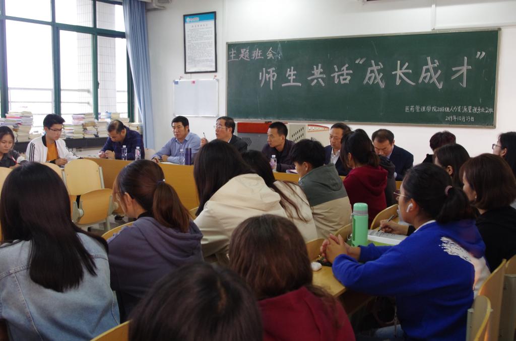 为切实开展“不忘初心、牢记使命”主题教育调研活动,按照《买球赛十大平台(山东省医学科学院)关于党政领导干部深入基层联系学生工作的实施意见》的要求,10月23日下午,校(院)党委常务副书记韩金祥深入到所联系的十大买球官网2018级人力资源管理专业2班进行调查研究,并与同学们进行了亲切座谈交流。党委组织部长张贤雷、济南校区人事处处长许双庆、泰安校区院长办公室主任赵遵强,学院党委书记张峰、副书记王彦、副院长苏宝利,学生辅导员代表,2018级人力资源管理专业2班40名同学等参加了座谈交流。座谈会由学院党委书记张峰主持。