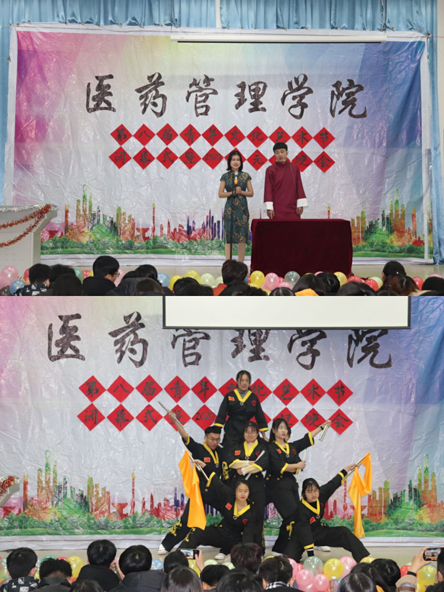 在晚会活动期间,我们穿插表彰了在本届青年文化艺术节中涌现出来的优秀团体和先进个人,李风雪等同学获得科技文化创新奖,王佳一等同学获得优秀个人奖,柴巧获得最佳新人奖,李婉莹获得最佳梦想家,赵冰儿获得最佳表演奖,王鹂遥获得最佳人气奖,19级市场营销专科一班等班级获得优秀组织奖。