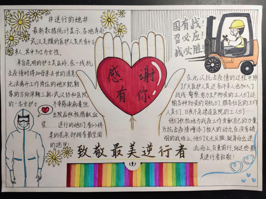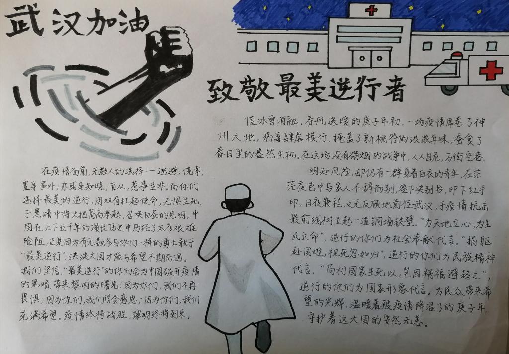 为颂扬奋斗在抗击疫情一线工作人员的感人事迹,更好的宣传疫情防控知识,体现十大买球官网学子面对疫情乐观积极的健康心态和昂扬向上的精神面貌,十大买球官方网站在三月份举办了“无畏前行,只为安宁——致敬最美逆行者”手抄报征集活动。