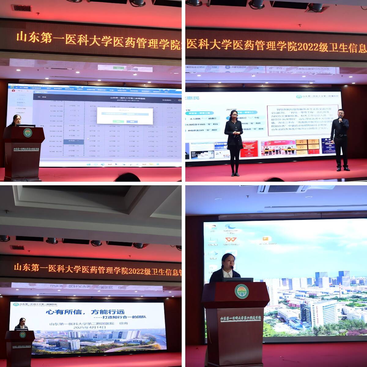 为深入了解当前智慧医院建设和DeepSeek等人工智能的应用情况,4月14日,十大买球官方网站公共事业管理专业师生走进买球赛十大平台第二附属医院(下简称山一大二附院),开展《卫生信息管理学》课内实践教学。本次实践课由任课老师张长丽带队,由山一大二附院运营管理部主任及智慧医院建设项目负责人徐南主讲,医院宣传部胡隽楠和运营管理部英晗以及孙佳分别进行了展示,通过“智慧医院项目建设案例+多场景展演+课程思政教育”等多种教学方式的综合运用,深化了“医管结合、产学研用融合”的创新教学模式。2022 级公共事业管理专业共119名同学参与了此次实践学习。