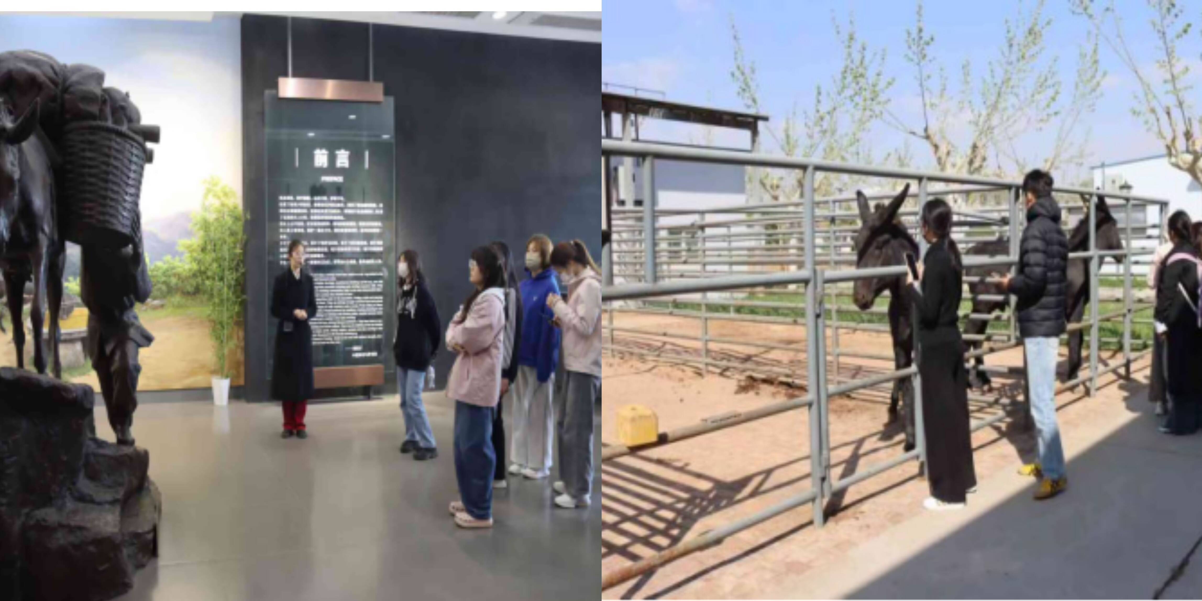 接着一行人来到东阿阿胶国际会议中心大会议室。刘波表示如今阿胶世界以工厂为舞台,以产品为道具,将生产场景与互动体验巧妙融合,让游客感受到东方医药瑰宝的滋补价值和金牌品质,实现游客变顾客、顾客变游客;艾传翠则为同学们剖析市场营销专业以其在数据分析能力培养、人脉网络构建、技能迁移与跨界能力提升等多维度的显著优势,能为学生职业发展铺就广阔道路。经过中午的短暂休整,同学们整装又出发,目的地就是闻名遐迩的东阿阿胶城。大家在老师的带领下深刻感受到了清末民初的独特时代风采,也更加了解东阿阿胶的制作工艺。在中国毛驴博物馆,同学们被丰富多样的展品深深吸引,全方位的展示让大家对毛驴这种生物有了全新的认识。