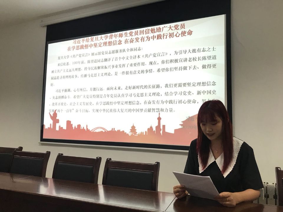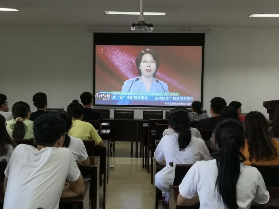 专题学习首先观看了全国大学生同上一堂课疫情防控思政大课中冯秀军教授讲的《战疫里的最美青春—谈中国青年的责任与担当》的演讲视频。冯教授围绕中国青年的责任与担当,讲述了在这场关系到中国前途命运的战“疫”之中,我们青年一代所担起的了不起的责任和担当,同时指出青年就是我们在历史传承之中每一个时代的接棒人,一代人有一代人的长征,一代人有一代人的担当。通过这场看不见硝烟的战疫中,教给我们如何去谱写自己的大写的青春一是心有大我,二是肩有大任,三是行有大德。这种国家兴亡,匹夫有责的责任传承,这种苟利国家生死以之的爱国精神的接续,正是我们中华民族生生不息,恒古绵延的精神密码。随后,学生第一党支部支部书记胡华秀老师带领大家学习了习近平总书记给复旦大学《共产党宣言》展示馆党员志愿服务队的回信,勉励广大党员在学思践悟中坚定理想信念,在奋发中践行初心使命。学生第二党支部支部书记周晓芳老师以在疫情期间在社区志愿服务50多天的2016级人力资源管理本科班的大学生党员武文菊同学为例,讲述了同学们身边的大学生党员的责任和担当。疫情期间十大买球官方网站有50多名同学积极投入到疫情防控过程中,这些同学充分发挥了模范带头作用,展现了新时代大学生们应该有的责任和担当。