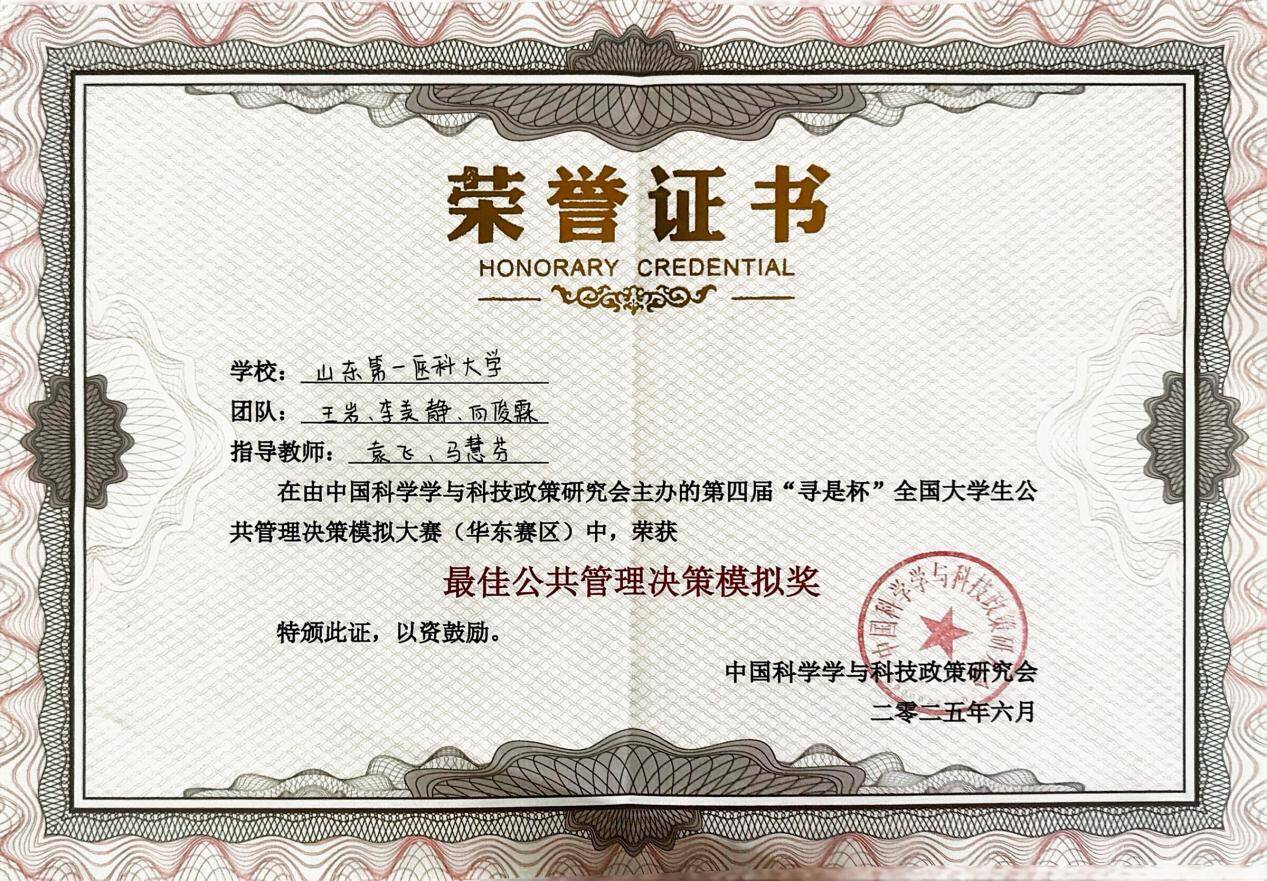 “寻是杯”全国大学生公共管理决策模拟大赛,是一项面向普通全日制高校公共管理及相关专业在校大学生的学科竞赛项目。该比赛由教育部高等学校公共管理类专业教学指导委员会指导、中国科学学与科技政策研究会主办,旨在通过模拟公共管理决策的过程,提升学生的实践应用与推演分析能力,激发学生的学习热情,锻炼学生的战略思维、团队精神。