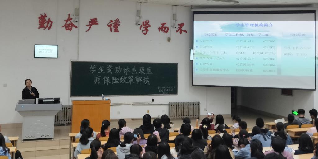 10月9日晚,学工部副部长刘玉向同学们介绍了学校学生资助体系、信用助学贷款、勤工助学等方面资助政策,对评优评奖的评选资格、违规违纪的处分及各项医疗保险政策进行了详细的解读。她还进行了防诈骗宣传教育,帮助同学们树立了防诈骗、反诈骗的安全意识,提高了自我保护能力。
