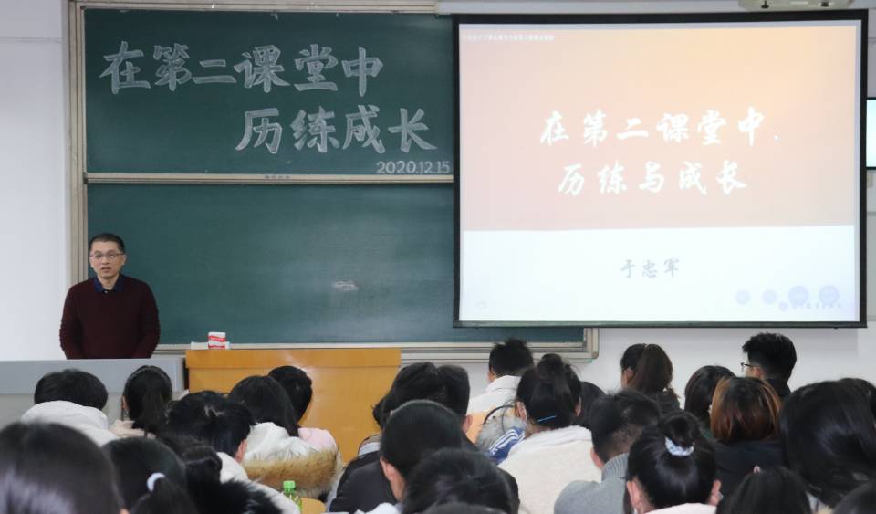 12月15日下午,十大买球官方网站在教学南楼C座1003教室成功举办了在第二课堂中历练成长”科技创新主题讲座。本次活动邀请了十大买球官方网站工商管理系系主任于忠军教授作为本次讲座主讲人,2020年山东省“创青春”创业计划大赛获奖代表队成员分享了自己的参赛经验,100余名学生参加了本次活动。