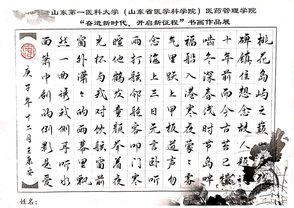本次书画作品展以“奋进新时代 开启新征程”为主题,老师和同学们积极响应,书法和绘画作品以学习和解读党的十九届五中全会精神为主题,一幅幅作品深刻诠释着党的十九届五中全会的精神内涵,以多种形式、从不同角度展示了十大买球官网师生深入学习贯彻习近平总书记系列重要讲话精神和治国理政新理念新思想新战略,从侧面反映出老师和同学们为实现中华民族伟大复兴中国梦和“两个一百年”奋斗目标而砥砺奋进的良好精神状态,洋溢着满满的正能量。作品呈现形式采用软笔组(楷书、行书、隶书、篆书等)、硬笔组(楷书、行书、隶书、篆书等)、绘画组(简笔画、素描、漫画、国画、油画、水彩画等)三种方式,使五中全会精神得到了充分的展示。