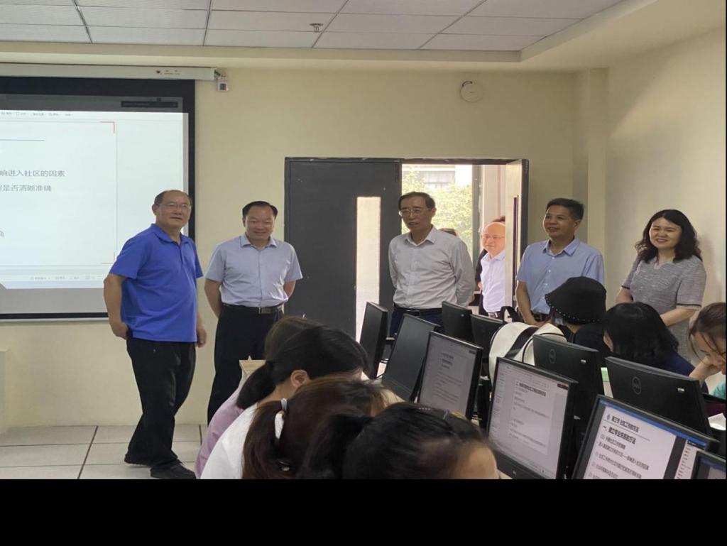 会前,韩书记参观了学院数字人力、市场营销、社会工作学生实训室,听取相关专业主任的介绍,并与学生亲切交谈。