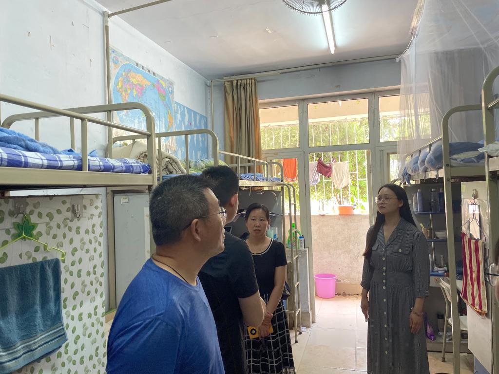 6月22日上午十大买球官方网站党委副书记胡睿和毕业班辅导员深入毕业班学生宿舍,对学生宿舍的卫生、安全、疫情防控等进行了检查和督促。检查过程中,与毕业生进行了深入的沟通与交流,询问了学生目前的生活学习、考研就业、论文答辩等情况,要求毕业生一方面要继续配合学校做好疫情防控工作,注意个人防护,定时开窗、通风;另一方面要注意保持宿舍卫生和安全,保持宿舍整洁,禁止使用大功率违规电器;三是要求毕业生在离校之际对寝室进行整理,为母校留下一个卫生整洁的宿舍环境,同时要提前做好离校相关事宜,倡导文明离校,感恩母校。