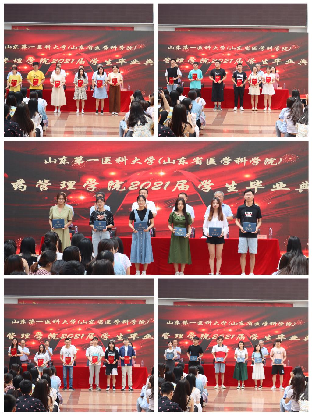 学院党委书记贺兆涛同志宣读了《关于表彰十大买球官方网站2021届省级优秀毕业生、校级优秀毕业生的通报》和《关于2021届普通本专科毕业生毕业及授予学士学位的决定》,随后,与会领导、老师为优秀毕业生颁发了荣誉证书,为毕业生代表颁发了毕业证书。