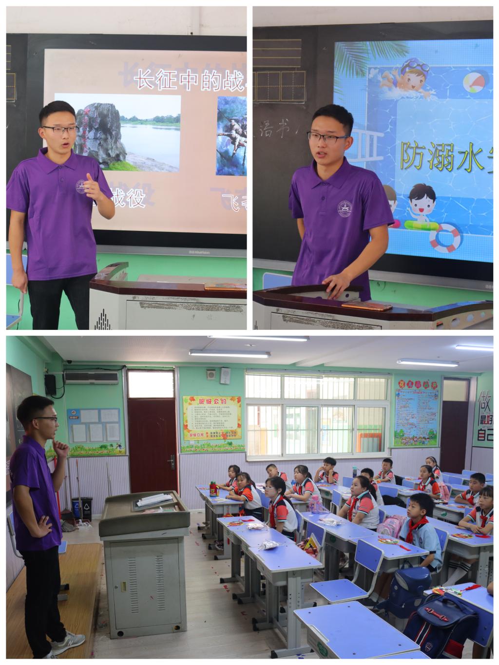下午2点,志愿服务队来到目的地,随后队员们有序分工,情绪饱满,进入状态。志愿服务队员首先为小朋友们开展党史红色教育,讲述长征故事,寓教于行,帮助他们感悟革命精神,厚植爱国情怀。讲课过程中台上台下积极互动,小朋友们纷纷讲述所知的长征精神,分享此次学习中的心得感悟。用故事讲理论,追寻长征精神,学习党史故事,引导学生传承红色基因,筑牢爱党爱国底色,树立崇高理想,努力拼搏奋进。党史学习结束后,志愿服务队队员就假期中的交通安全知识和防溺水安全知识两方面进行讲解,为保证小朋友们安全快乐度过假期再上一层保险。