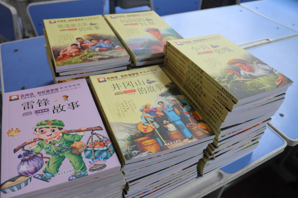 活动最后,队员们为小朋友们分发《闪闪红星》、《雷锋故事》等红色英雄故事书。