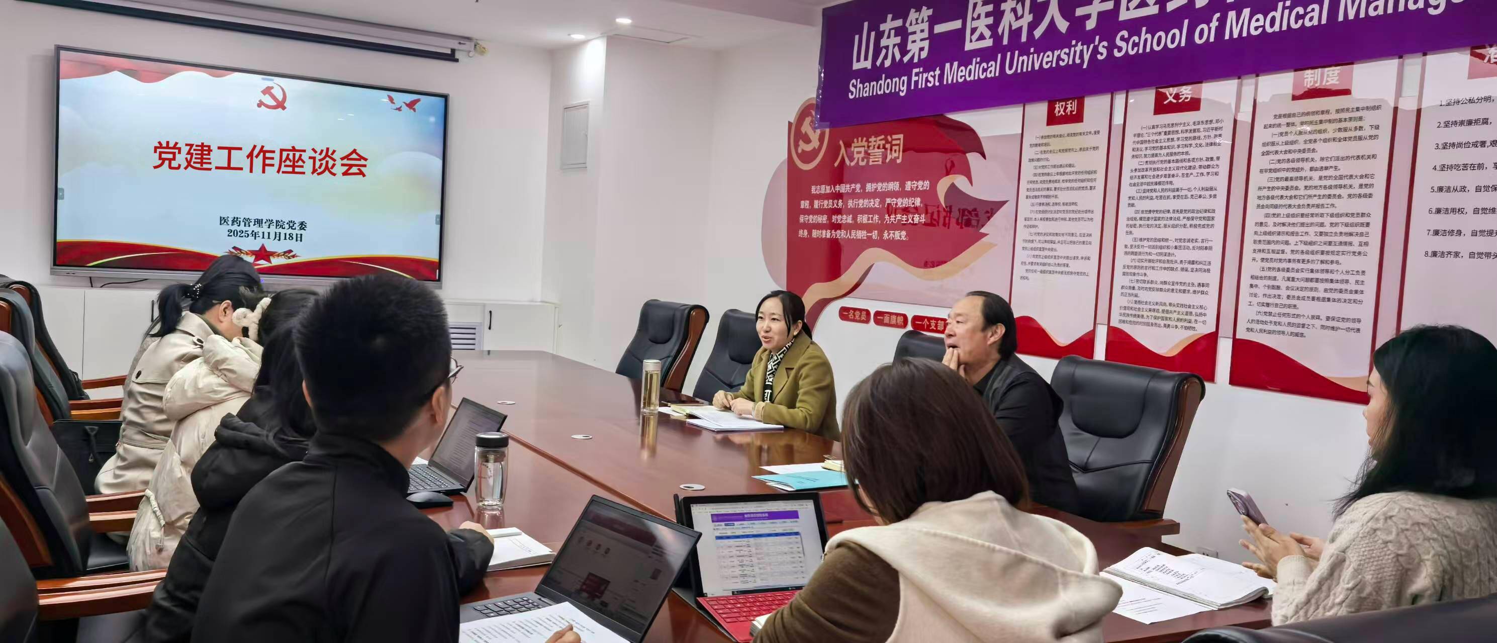 孙琳婧首先对本次会议的目的和意义进行了阐述,就党建与业务发展,党支部与品牌创建等工作提出三点意见:一是如何强化政治引领,促进学院教育教学、学科发展、科学研究、社会服务等工作高质量发展;二是党支部建设如何创品牌,出亮点。如何聚焦医药管理学科特色,以“品牌化培育”为抓手构建党建品牌矩阵。对标高校党建“双创”要求,打造具有专业辨识度的“党建+”特色品牌;三是党建与学院发展如何实现双向赋能,协同共进。坚持围绕中心抓党建,抓好党建促发展。把党员先锋作用转化为攻克教学难题、推进科研创新的具体成效。构建“党建+育人”“党建+科研”协同机制,形成党建引领业务、业务反哺党建的良性循环。