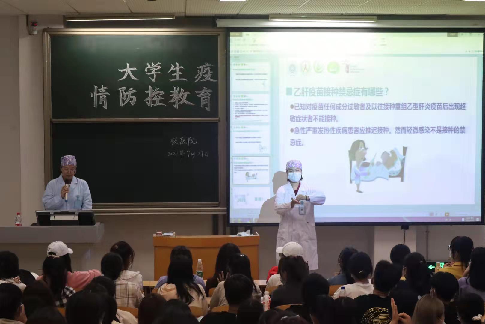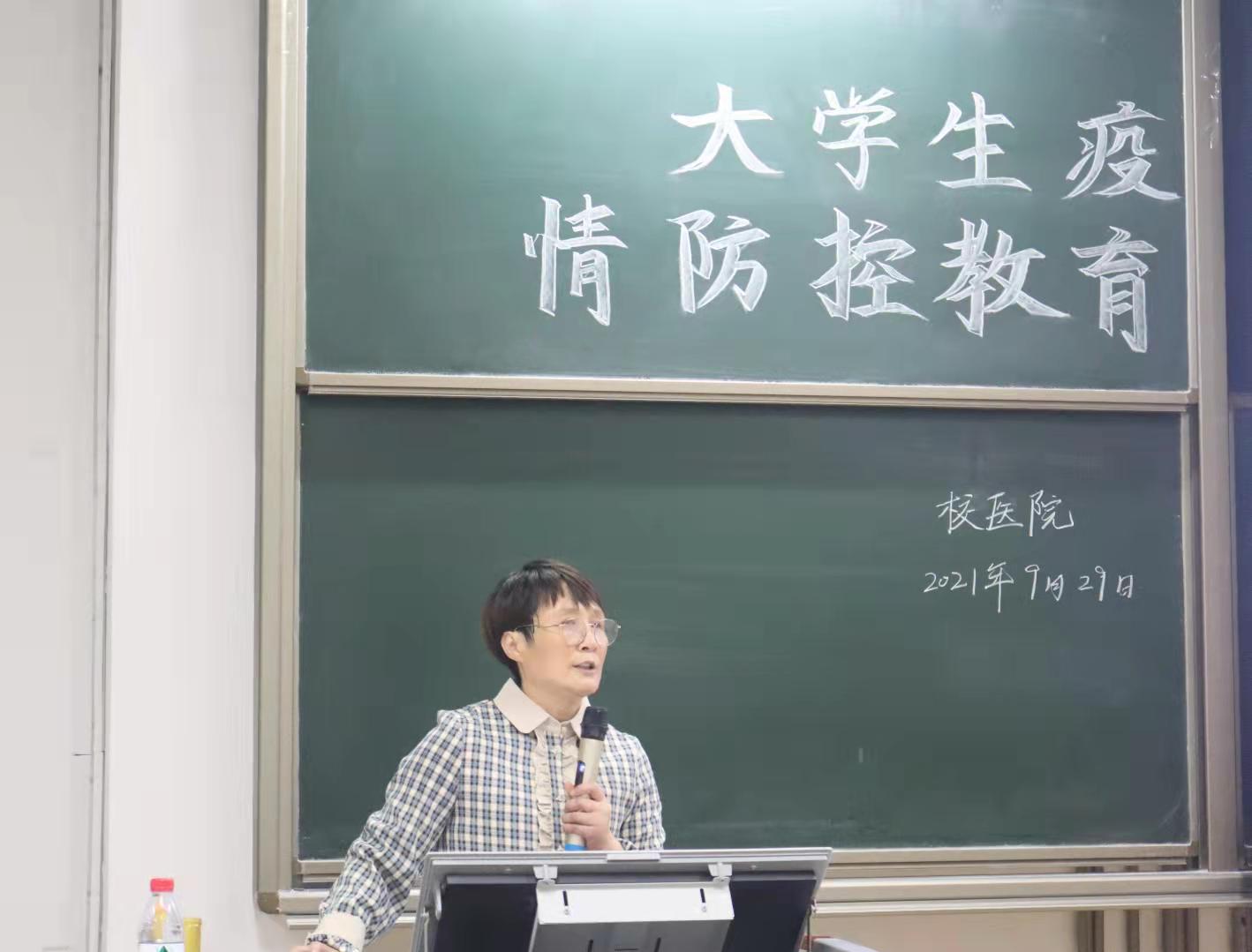 为进一步宣传疫情防控有关知识,加强学生的疫情防控意识,将疫情防控行动落实到位。十大买球官方网站于9月29日晚在教学南楼C 1002举办了新生疫情防控教育及传染病防治知识主题讲座,本次讲座特邀校医院院长张萍主讲。