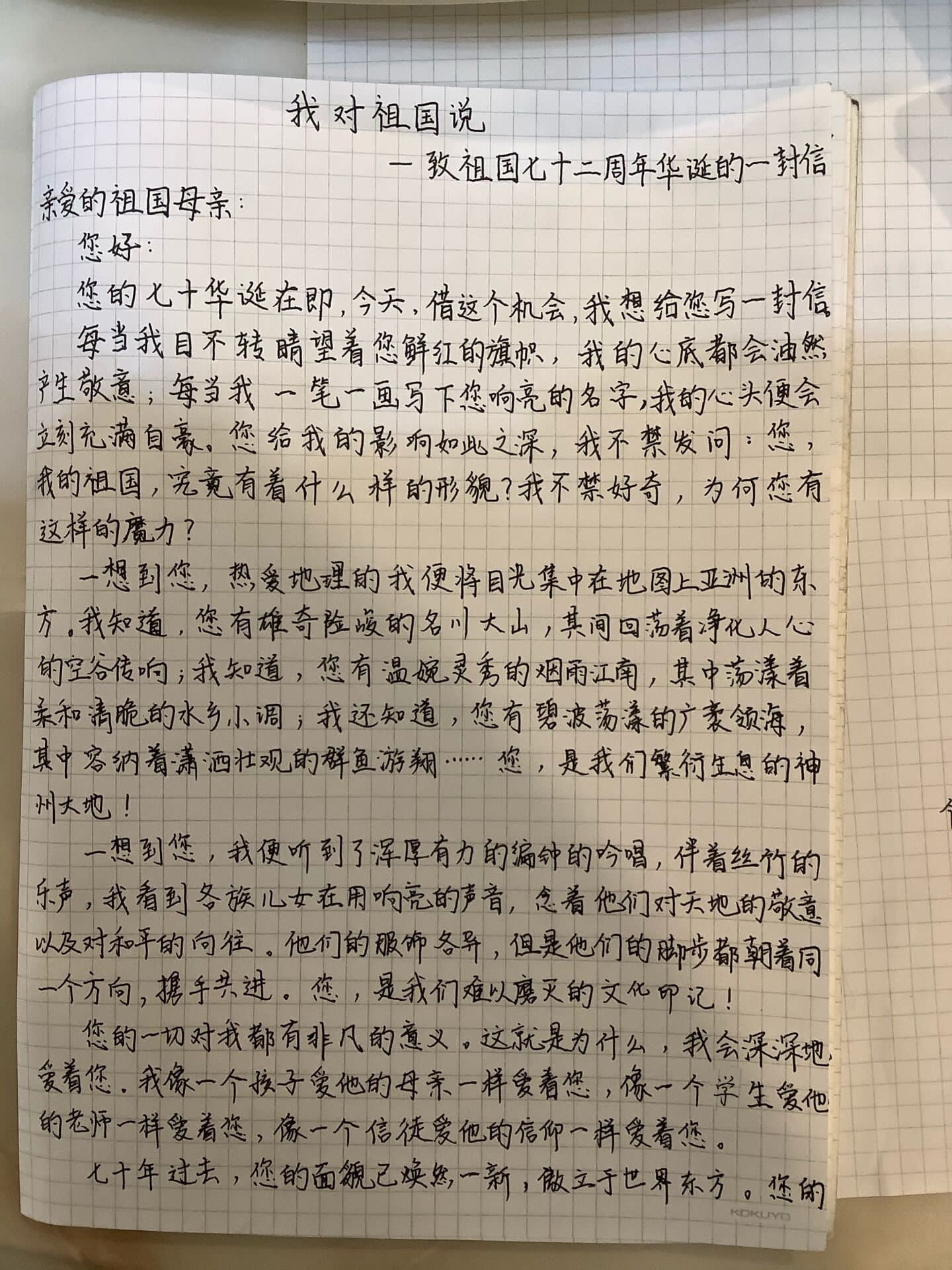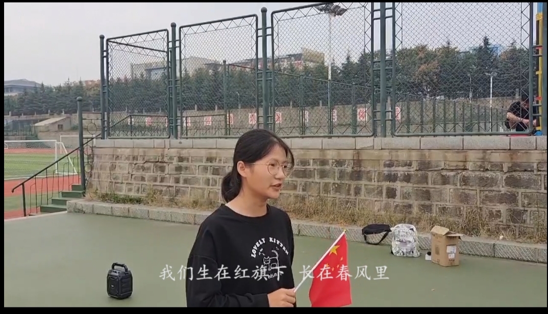 活动伊始,同学们在10月3日上午9点准时在学校北体育场集合,手持事先准备好的小红旗跟随音乐,面向首都方向齐声合唱《我和我的祖国》等爱国歌曲,体育场上一阵阵嘹亮的歌声抒发着同学们强烈的爱国热情。在同学们歌唱祖国母亲结束之后,十大买球官网新闻工作者对同学们进行采访报道,面对新闻工作者提出的“作为当代大学生,我们应当怎样建设祖国的未来”、“看到祖国从一穷二白到如今的繁荣昌盛的高速发展你有什么看法”等问题,同学们对答如流,各抒己见,充分展现出当代大学生拼搏奋斗,自强不息的爱国热情。随后,参加活动的同学们有感而发,主动为祖国的72华诞写一封信,以此来歌颂,赞美我们的祖国母亲。最后,同学们积极响应号召,在十大买球官网小会议室观看《建国大业》、《战狼》等爱国主题电影。