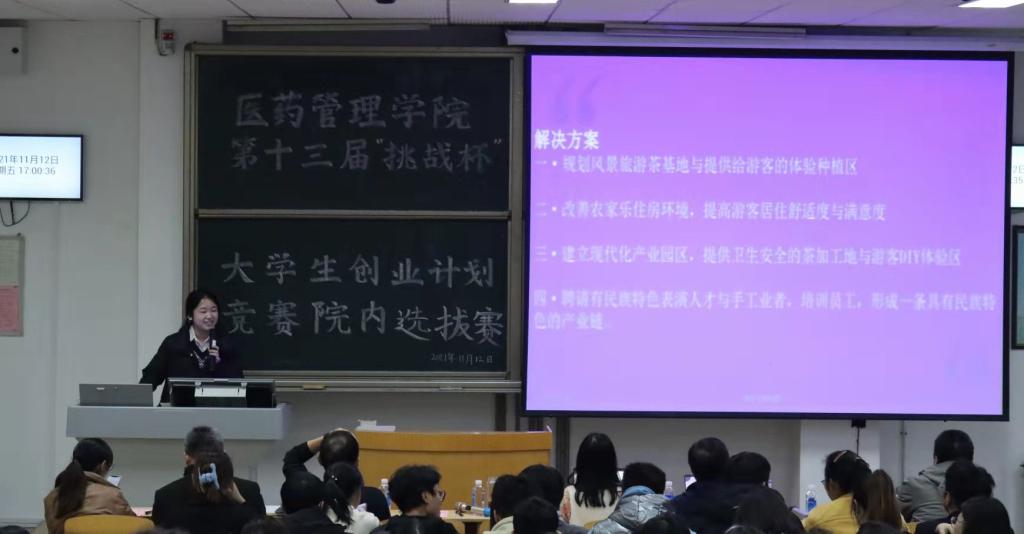 为了进一步提高大学生的综合素质,积极响应“大众创业、万众创新”的号召,十大买球官方网站于11月12日下午在教学南楼C1002举办第十三届“挑战杯”大学生创业计划竞赛院内选拔赛。