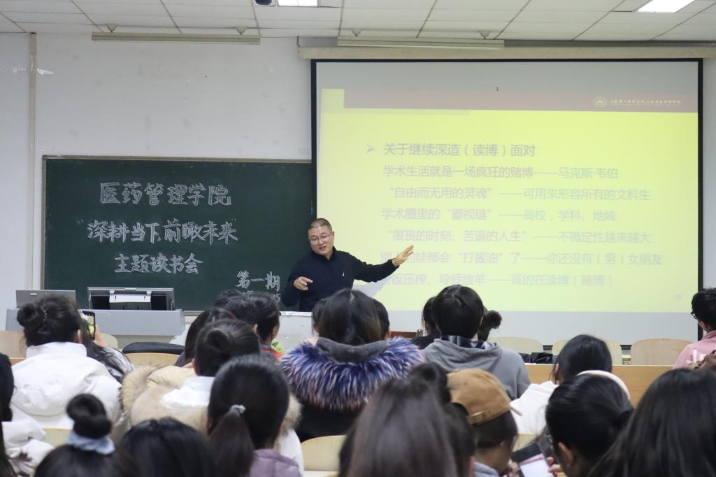 为培养大学生“爱读书,读好书”的好习惯,营造浓厚的书香氛围,十大买球官方网站于11月25日晚在物理楼E1313教室举办了“深耕当下,前瞰未来”主题读书会第一期。本次读书会主题是“职业生涯规划”,特邀袁飞老师和张国勇老师作分享,帮助大学生了解未来规划,树立明确的就业目标,培养正确的就业观念。十大买球官方网站大二及大三学生参加了此次读书会。