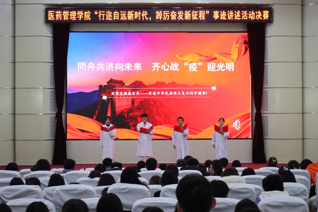 活动在刘依然、张晓哲等同学带来的开场舞《万疆》中拉开帷幕。第一个节目是孙海若同学带来的手工作品《西南联大精神》,孙海若同学利用手工作品的形式向我们讲述了那段光辉历史,表现了一代文人志士不惧艰难、报效祖国的坚定信念;第二个节目是姚璐璐、唐宇萱、熊泉清、徐桥雨同学带来的配乐情景朗诵《同舟共济向未来,齐心抗“疫”迎光明》,讲述了疫情期间医护人员勇赴一线、不畏艰险的奉献精神;第三个节目是刘陵同学带来了剪纸作品《剪纸里的红色故事》,将历史与剪纸作品相结合,向我们讲述了抗日战场上一个个可歌可泣的英雄事迹,勾起了现场观众对爱国烈士的追忆;第四个节目是李叶同学带来的PPT讲述《聚力新时代,点亮新征程》,一张张翻动着的图片向我们展现了新时代乡村振兴战略的显著成效;第五个节目是张育康同学带来的事迹讲述《风云交汇,征途如虹》,内容铭史知新,体现了中国共产党在百年奋斗历程中带领人民在脱贫攻坚上取得的伟大成就。第六个节目是任祥鹏、王祥龙等同学带来了舞台剧表演《向海蹈厉,矢志深蓝》,生动的表演再现了抗日战争期间共产党员舍生忘死的英勇事迹。最后,活动在杨馥毓、卜浩洋等同学带来的歌曲《少年中国说》中落下帷幕。