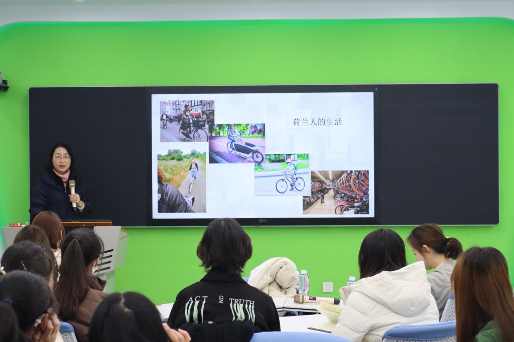 首先,王爱敏为我们讲述了“赴荷兰访学汇报及留学经验”,分享了她在鹿特丹伊拉斯姆斯大学访学的经历,通过大量图片向大家展示了荷兰优美景色,还有她在伊拉斯姆斯大学医学院的工作和生活环境,并且通过自制的视频向同学们展示了她在荷兰一天的工作生活。最后王爱敏给有留学想法的同学提出了一些宝贵的建议。