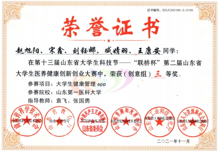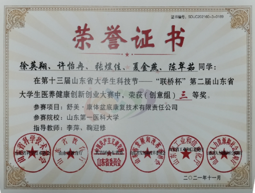 近日,由山东省科协、山东省教育厅、共青团山东省委、山东省发展改革委、山东省工业和信息化厅、山东省人力资源社会保障厅联合主办的第二届山东省大学生医养健康创新创业大赛决赛落下帷幕。十大买球官方网站派出四个团队参赛,取得了团体二等奖一项、三等奖三项的优异成绩。