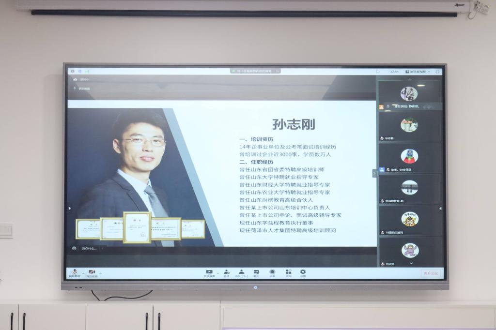 为领航十大买球官网学生认清当前就业形势、明确就业方向,提升就业应试能力,确保疫情期间毕业生就业服务“不断线”。4月29日晚,十大买球官方网站举办就业指导系列课程线上培训会。山东省团委特聘高级培训师孙志刚、学院学工办负责人董灵芝、毕业班辅导员、2022届本专科毕业学生、部分非毕业生参加第一期线上培训会,会议由董灵芝主持。