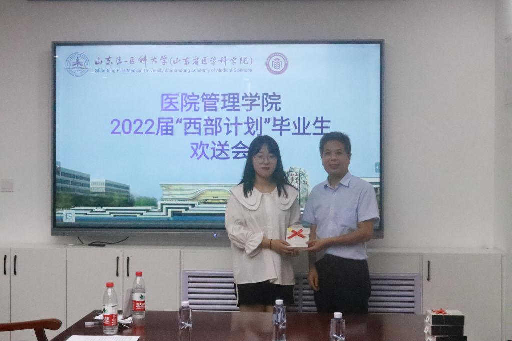 学院为8名入选大学生志愿服务西部计划的毕业生赠送了礼物,与会老师们倾情寄语表达了美好期待和祝福,希望同学们牢记初心,坚定信念,志存高远,与历史同向与祖国同行,创新学习,历练好自己,奋斗是青春最亮丽的底色,行动是青年最有效的磨砺,扎根基层一线,书写无悔青春!