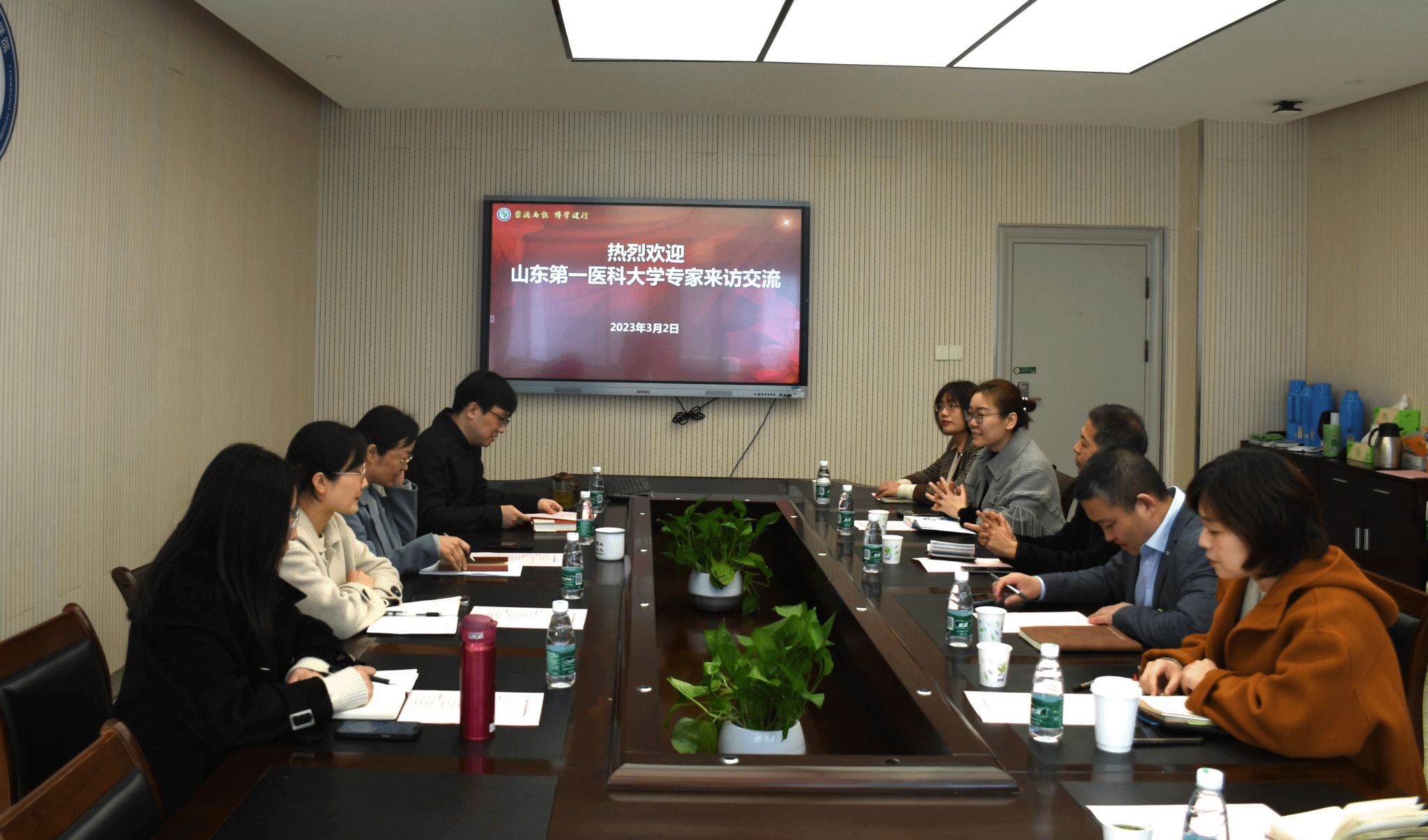 陈士福介绍了山一大十大买球官方网站的办学历史、办学理念、管理模式等情况,希望进一步加强与医政学院交流合作力度,丰富交流形式,拓宽十大买球官方网站专业建设与教学改革思路,并诚挚邀请南京医科大学医政学院相关领导专家到山一大进行学术交流。与会人员就人才培养、实习就业、学科规划、硕士点建设等事项进行了深入探讨和交流。