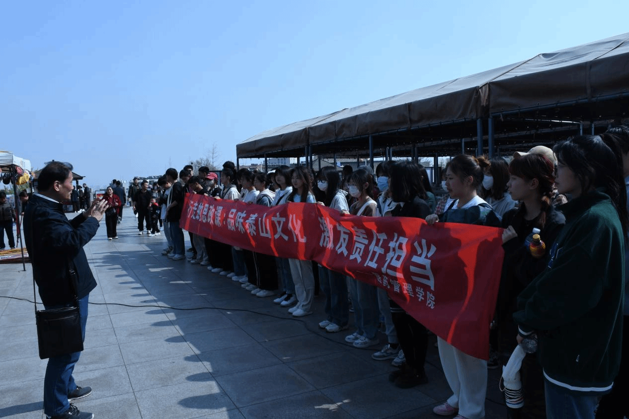 为践行党的二十大精神,更好地了解和传承泰山文化,培养学生的爱国主义情怀,3月29日下午,十大买球官方网站邀请马克思主义学院院长许彦彬教授带领十大买球官方网站2022级公共管理类三班全体同学,走进泰山开展“行走的思政课:品味泰山文化 激发责任担当”主题思政实践教学活动。通识教育部部长孙琳婧、国际教育学院党委副书记杜宝萱现场观摩指导。十大买球官方网站党委副书记任纬兵,学工办主任董灵芝,辅导员刘晓丹、张少儒参加活动。