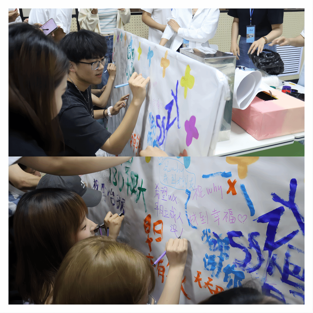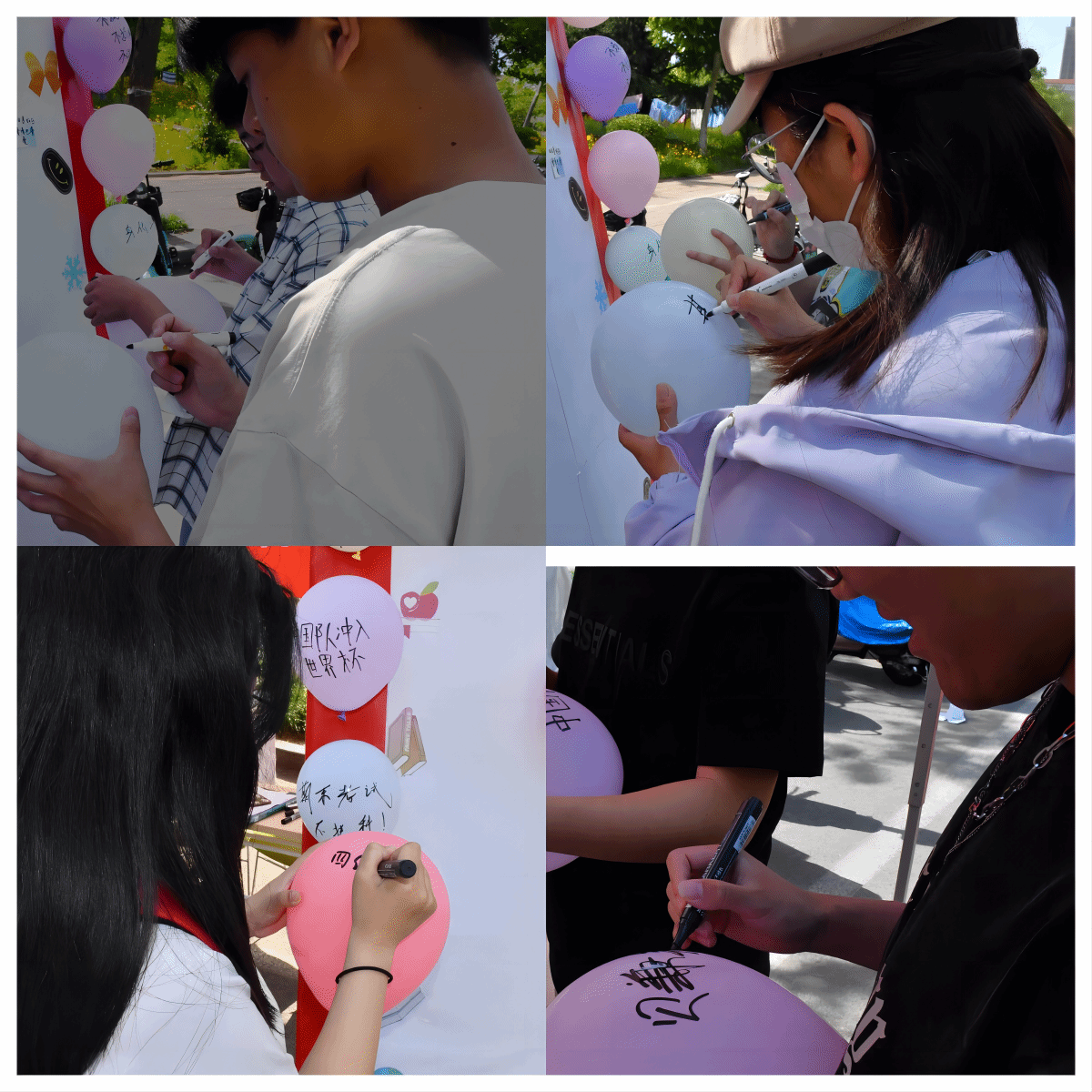 此次心理主题活动分为“愿望留言板”和“放飞烦恼的纸飞机”两部分。同学们将自己的心愿、祝福、真心话写在便利贴或气球上,然后粘贴在愿望留言板上。活动期间广大在校生踊跃参加,在留言板上有自己的未来目标;有对家人、朋友真诚的祝福;也有好友之间,愿友谊天长地久……小小的留言墙,成为了传递爱和力量的“心灵桥”。放飞烦恼纸飞机活动中,同学们将埋藏在心中的烦心事写下,然后将寄予故事的纸张折成纸飞机放飞。放飞之后,每位同学随机捡起他人的一个纸飞机,互相沟通,给出自己的建议,相互讨论解决彼此烦恼的方法。