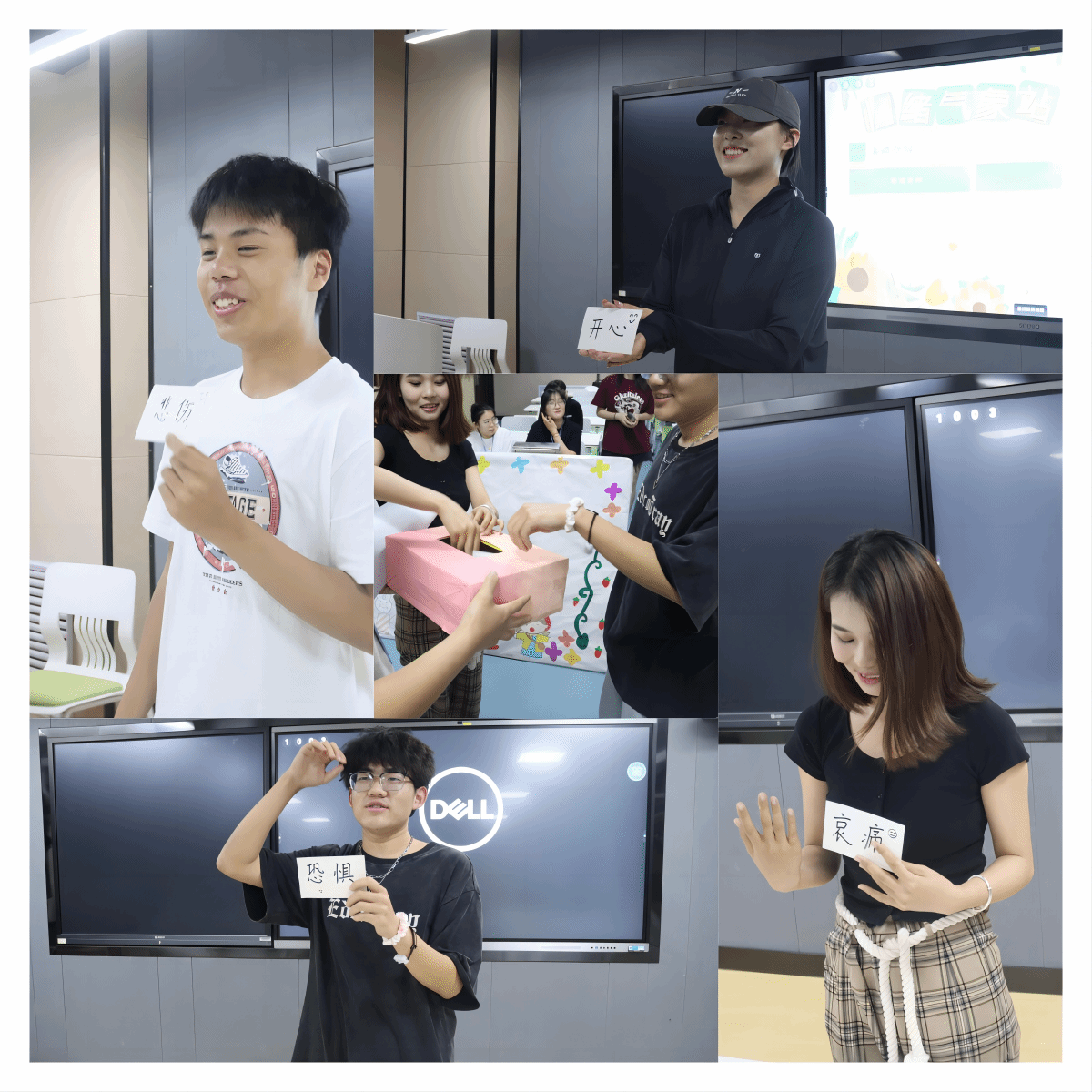 情绪就像变化多端的天气,明明上一秒还晴空万里,下一秒就有可能阴云密布。在趣味心理小游戏环节中,同学们就自己抽取到的情绪卡片,结合自己的学习与生活经历,诉心声,解心结。通过让大家直面各种情绪,引导同学们正确认识对待情绪,合理宣泄情绪。