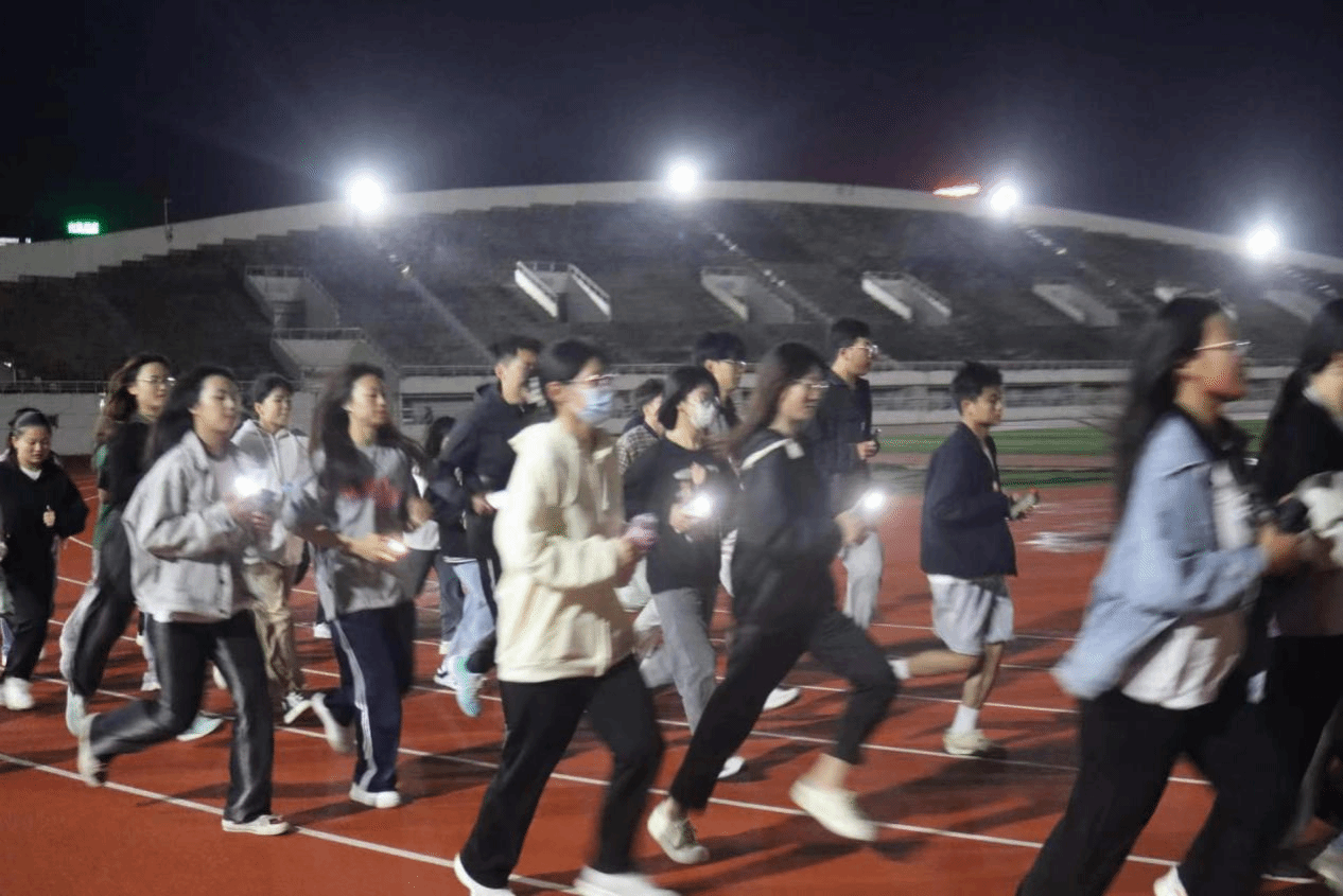 活动伊始,志愿者们带领参赛学生前往签到处登记,并宣读此次夜跑活动的规则和注意事项。夜色渐深,在简单的热身运动后,参加夜跑的同学在起跑点集合,随着哨声响起,同学们奋力开跑。跑道上,同学们奋勇争先,尽情释放着青春的活力,相互帮助,用灯光照亮前行的道路,灯光“聚”成的一条长龙,点亮了买球赛十大平台体育场的夜空,成为今夜最靓丽的风景。