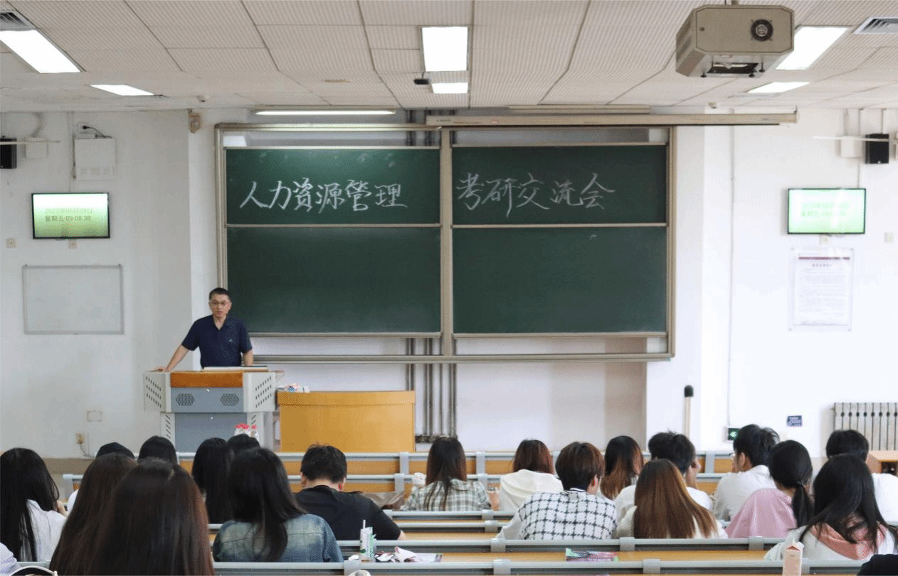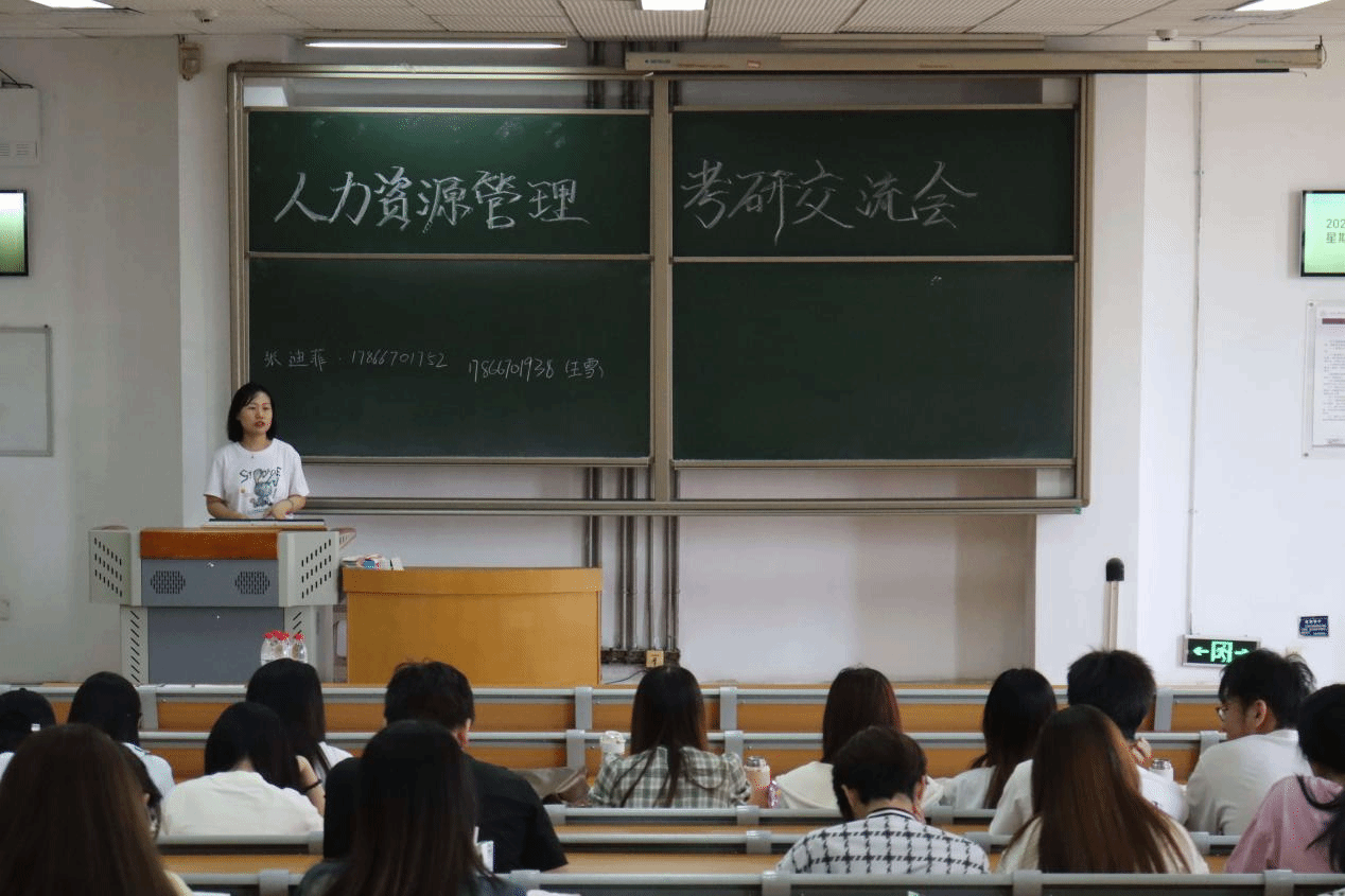 为进一步提高十大买球官网2021级学生的考研热情,让同学们了解更多的考研信息,6月9日,十大买球官方网站在教学南C2002教室举办人力资源管理专业考研经验交流会,人力资源管理系主任于忠军、辅导员安静,优秀考研生代表张迪菲、王雪以及2021级人力资源管理专业全体学生参会。