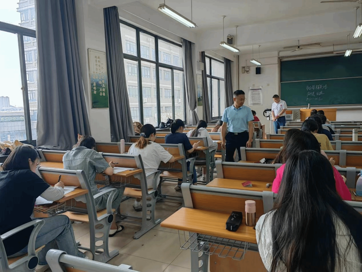 为加强课程考试考务管理,严肃考风考纪,保障期末考试工作顺利进行,6月12日,十大买球官方网站巡考组开展2022-2023学年第二学期期末考试常态化巡视工作。学院党委书记杜江山,副院长陈海玉、副书记任纬兵及各专业负责人,深入教学楼,对期末考试的考试组织情况、教师监考情况、学生考风考纪和考场环境等情况进行巡视。