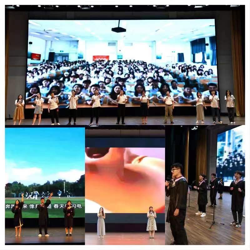 晚会第三篇章的主题是“前程似锦”:“放心去飞,勇敢地去追,追一切我们未完成的梦……”十大买球官方网站的老师们饱含深情为毕业学子倾情献唱《放心去飞》,鼓励同学们不怕困难、不惧挑战,为了梦想勇毅前行。愿你阅尽千帆,归来仍是少年,一曲《你曾是少年》祝愿毕业生走出校园,仍是当初那个英姿勃发、拼搏向上的热血少年;歌曲《你从未离去》让即将毕业的同学不再迷茫,背上思念的行囊走向远方;念一段过往,守一颗初心,视频中大四同学们回忆过往,许下期望,一帧帧画面流露出同学们对校园生活的怀念;最后,晚会在歌曲《再见》中圆满落幕。