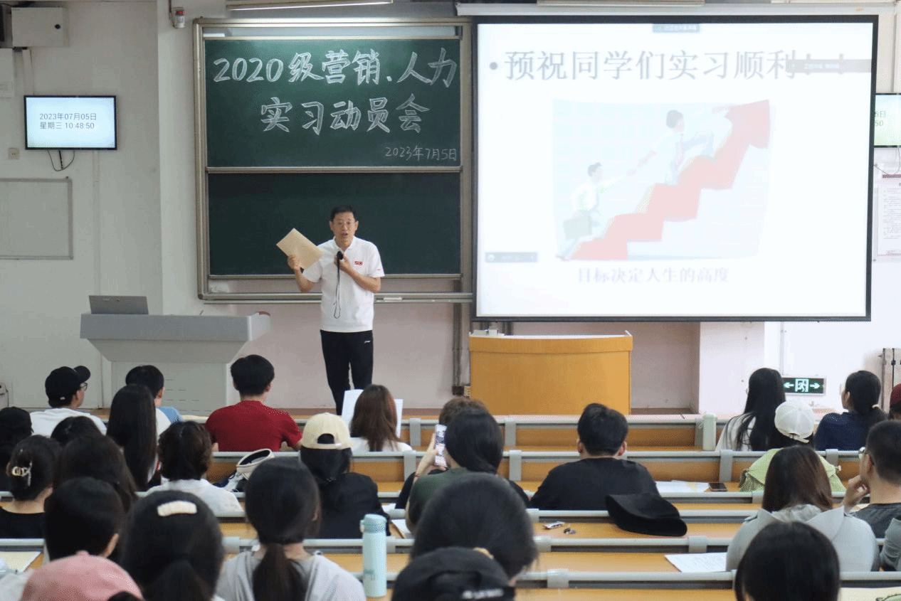 为帮助学生明确实习任务,树立正确的实习和就业观念,7月5日,十大买球官方网站在南C1002教室召开2020级营销、人力专业实习动员大会。学院党委副书记任纬兵、市场营销系主任崔行武、教学办主任高娟、辅导员杨苗苗及2020级营销、人力专业同学参会。