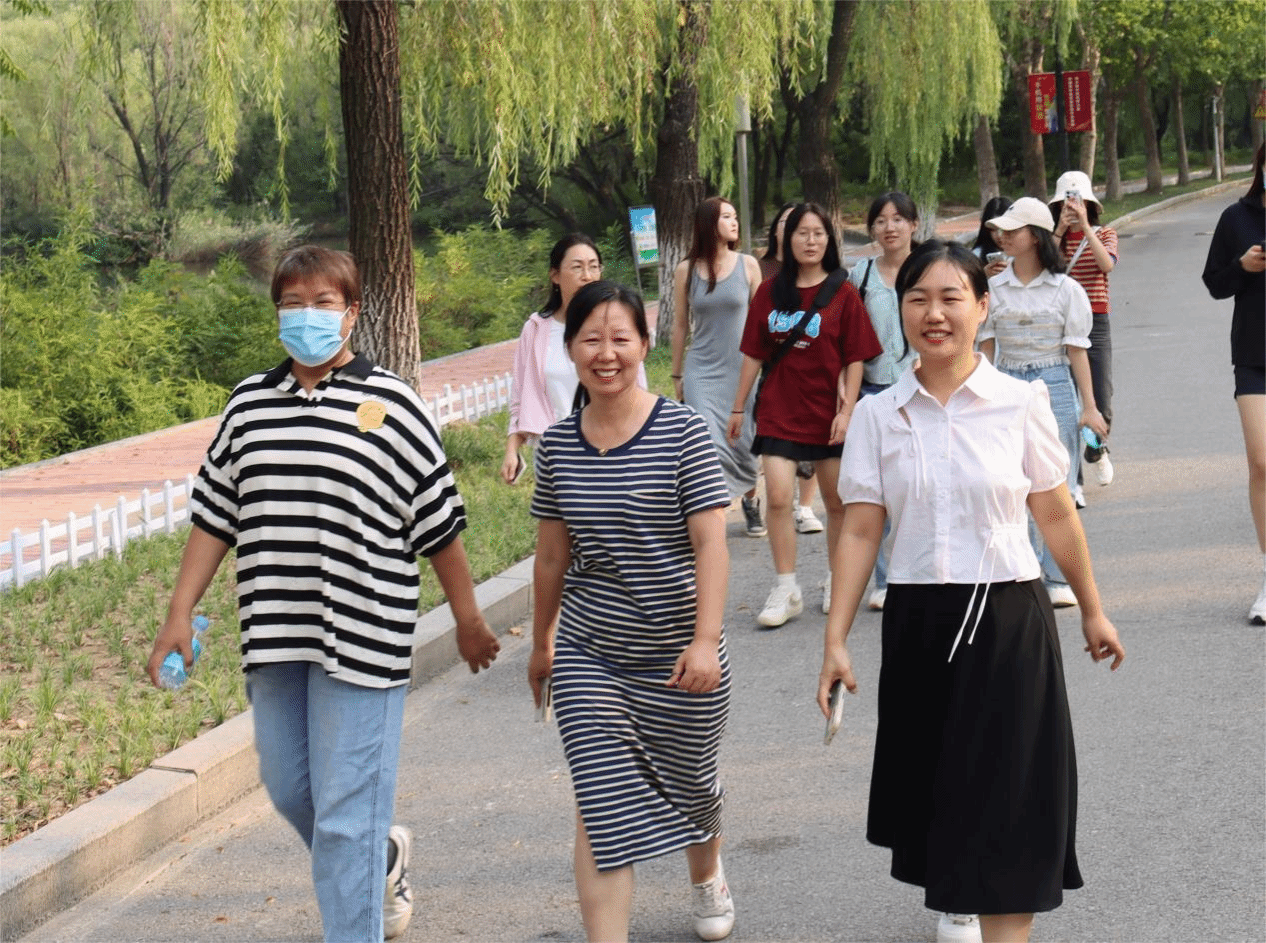 教职工们个个神采奕奕,意气风发,迈着矫健的步伐行走在校园中,或三五成群,或两人结伴而行,一边交流工作和生活趣事,一边欣赏校园美景。老师们一路上欢声笑语不断,在放松身心的同时充分展现了昂扬奋进的精神面貌,形成了校园里一道亮丽的风景线。