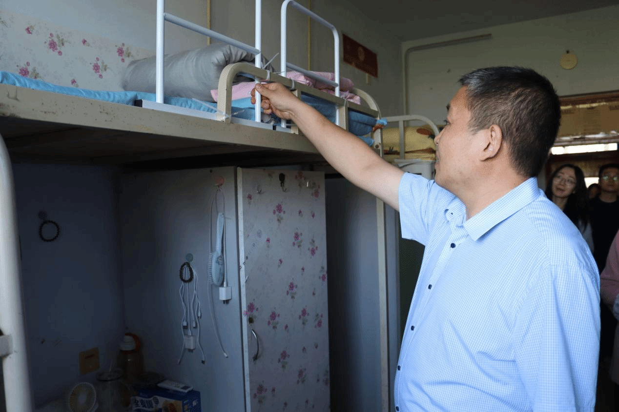 文明宿舍评选重点围绕宿舍卫生、文化、学习、文明修养、安全秩序等多方面进行综合评价,任纬兵一行在本次的走访中以寝室卫生状况为着手点展开检查,对寝室物品摆放、整洁度做出纠正和评价,并仔细检查学生规范用电情况,排除宿舍安全隐患。同时,评审老师们认真观察了学生宿舍装饰并与同学们亲切交流,进一步了解了宿舍文化环境。