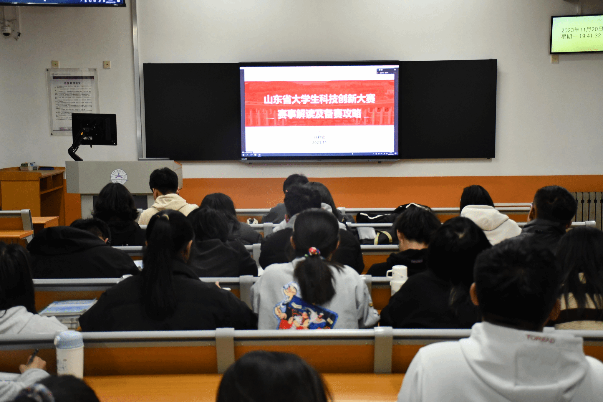 为加快落实创新驱动发展战略,帮助同学们明确大学生科技创新大赛赛程要求,11月20日,十大买球官方网站组织学生观看2023年山东省大学生科技创新大赛系列培训,致信有为(济南) 有限公司总经理张祥钦为同学们详细解读大赛政策,十大买球官方网站学生积极参加会议。
